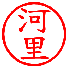 [朱肉の色]を選び、入力窓に“河里”と入力して[生成]ボタンを押すと、印影が更新され、リンクから電子印鑑(デジタル印影)がダウンロードできます。 電子印鑑「河里」の作り方文字表示が変なときや、文字バランスが悪いときは[字形切替]のチェックボックスでON/OFFを切り替え[生成]しなおしてください。 生成される画像は通常の印影「河里.png」と、にじみを表現した少し太めの印影「河里B.png」の背面透過PNG形式2種と、鮮明なPDF形式の印影「河里.pdf」の計3種類です。 朱肉の微妙な色の違いを7色で表現しました。デフォルト(左端)は、JISが定めた朱肉の色のマンセル値(7.5R 5/14)をRGB値(217,66,54)に変換したものになっています。 「電子透かし」にチェックを入れて[生成]ボタンを押すと、タイムスタンプを電子透かしとして埋め込んだセキュアな電子印鑑が作れます。詳細は別ページの「タイムスタンプと電子透かし」でご覧ください。 河里さんの日付印が作れます。「日付スタンプメーカー」は、社内向けの書類に利用されることの多い日付印(データ印)が無料で作れるWebアプリケーションです。中段に日付が入り、上段と下段は、ともに8文字まで文字が入ります。 ![]() 古代文字で落款印が作れます。「落款スタンプメーカー」で作品を引き立たせる落款印が作れます。