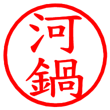 [朱肉の色]を選び、入力窓に“河鍋”と入力して[生成]ボタンを押すと、印影が更新され、リンクから電子印鑑(デジタル印影)がダウンロードできます。 電子印鑑「河鍋」の作り方文字表示が変なときや、文字バランスが悪いときは[字形切替]のチェックボックスでON/OFFを切り替え[生成]しなおしてください。 生成される画像は通常の印影「河鍋.png」と、にじみを表現した少し太めの印影「河鍋B.png」の背面透過PNG形式2種と、鮮明なPDF形式の印影「河鍋.pdf」の計3種類です。 朱肉の微妙な色の違いを7色で表現しました。デフォルト(左端)は、JISが定めた朱肉の色のマンセル値(7.5R 5/14)をRGB値(217,66,54)に変換したものになっています。 「電子透かし」にチェックを入れて[生成]ボタンを押すと、タイムスタンプを電子透かしとして埋め込んだセキュアな電子印鑑が作れます。詳細は別ページの「タイムスタンプと電子透かし」でご覧ください。 河鍋さんの日付印が作れます。「日付スタンプメーカー」は、社内向けの書類に利用されることの多い日付印(データ印)が無料で作れるWebアプリケーションです。中段に日付が入り、上段と下段は、ともに8文字まで文字が入ります。 ![]() 古代文字で落款印が作れます。「落款スタンプメーカー」で作品を引き立たせる落款印が作れます。