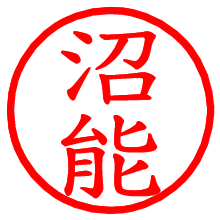 [朱肉の色]を選び、入力窓に“沼能”と入力して[生成]ボタンを押すと、印影が更新され、リンクから電子印鑑(デジタル印影)がダウンロードできます。 電子印鑑「沼能」の作り方文字表示が変なときや、文字バランスが悪いときは[字形切替]のチェックボックスでON/OFFを切り替え[生成]しなおしてください。 生成される画像は通常の印影「沼能.png」と、にじみを表現した少し太めの印影「沼能B.png」の背面透過PNG形式2種と、鮮明なPDF形式の印影「沼能.pdf」の計3種類です。 朱肉の微妙な色の違いを7色で表現しました。デフォルト(左端)は、JISが定めた朱肉の色のマンセル値(7.5R 5/14)をRGB値(217,66,54)に変換したものになっています。 「電子透かし」にチェックを入れて[生成]ボタンを押すと、タイムスタンプを電子透かしとして埋め込んだセキュアな電子印鑑が作れます。詳細は別ページの「タイムスタンプと電子透かし」でご覧ください。 沼能さんの日付印が作れます。「日付スタンプメーカー」は、社内向けの書類に利用されることの多い日付印(データ印)が無料で作れるWebアプリケーションです。中段に日付が入り、上段と下段は、ともに8文字まで文字が入ります。 ![]() 古代文字で落款印が作れます。「落款スタンプメーカー」で作品を引き立たせる落款印が作れます。