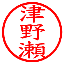 [朱肉の色]を選び、入力窓に“津野瀬”と入力して[生成]ボタンを押すと、印影が更新され、リンクから電子印鑑(デジタル印影)がダウンロードできます。 電子印鑑「津野瀬」の作り方文字表示が変なときや、文字バランスが悪いときは[字形切替]のチェックボックスでON/OFFを切り替え[生成]しなおしてください。 生成される画像は通常の印影「津野瀬.png」と、にじみを表現した少し太めの印影「津野瀬B.png」の背面透過PNG形式2種と、鮮明なPDF形式の印影「津野瀬.pdf」の計3種類です。 朱肉の微妙な色の違いを7色で表現しました。デフォルト(左端)は、JISが定めた朱肉の色のマンセル値(7.5R 5/14)をRGB値(217,66,54)に変換したものになっています。 「電子透かし」にチェックを入れて[生成]ボタンを押すと、タイムスタンプを透かしとして埋め込んだセキュアな電子印鑑が作れます。詳細は別ページの「電子透かしとタイムスタンプ」でご覧ください。 津野瀬さんの日付印が作れます。「日付スタンプメーカー」は、社内向けの書類に利用されることの多い日付印(データ印)が無料で作れるWebアプリケーションです。中段に日付が入り、上段と下段は、ともに8文字まで文字が入ります。 ![]() 古代文字で落款印が作れます。「落款スタンプメーカー」で作品を引き立たせる落款印が作れます。