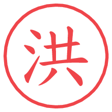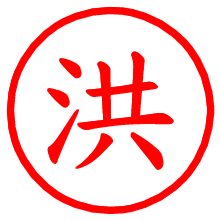 [朱肉の色]を選び、入力窓に“洪”と入力して[生成]ボタンを押すと、印影が更新され、リンクから電子印鑑(デジタル印影)がダウンロードできます。 電子印鑑「洪」の作り方文字表示が変なときや、文字バランスが悪いときは[字形切替]のチェックボックスでON/OFFを切り替え[生成]しなおしてください。 生成される画像は通常の印影「洪.png」と、にじみを表現した少し太めの印影「洪B.png」の背面透過PNG形式2種と、鮮明なPDF形式の印影「洪.pdf」の計3種類です。 朱肉の微妙な色の違いを7色で表現しました。デフォルト(左端)は、JISが定めた朱肉の色のマンセル値(7.5R 5/14)をRGB値(217,66,54)に変換したものになっています。 「電子透かし」にチェックを入れて[生成]ボタンを押すと、タイムスタンプを電子透かしとして埋め込んだセキュアな電子印鑑が作れます。詳細は別ページの「タイムスタンプと電子透かし」でご覧ください。 洪さんの日付印が作れます。「日付スタンプメーカー」は、社内向けの書類に利用されることの多い日付印(データ印)が無料で作れるWebアプリケーションです。中段に日付が入り、上段と下段は、ともに8文字まで文字が入ります。 ![]() 古代文字で落款印が作れます。「落款スタンプメーカー」で作品を引き立たせる落款印が作れます。