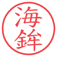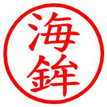 [朱肉の色]を選び、入力窓に“海鉾”と入力して[生成]ボタンを押すと、印影が更新され、リンクから電子印鑑(デジタル印影)がダウンロードできます。 電子印鑑「海鉾」の作り方文字表示が変なときや、文字バランスが悪いときは[字形切替]のチェックボックスでON/OFFを切り替え[生成]しなおしてください。 生成される画像は通常の印影「海鉾.png」と、にじみを表現した少し太めの印影「海鉾B.png」の背面透過PNG形式2種と、鮮明なPDF形式の印影「海鉾.pdf」の計3種類です。 朱肉の微妙な色の違いを7色で表現しました。デフォルト(左端)は、JISが定めた朱肉の色のマンセル値(7.5R 5/14)をRGB値(217,66,54)に変換したものになっています。 「電子透かし」にチェックを入れて[生成]ボタンを押すと、タイムスタンプを透かしとして埋め込んだセキュアな電子印鑑が作れます。詳細は別ページの「電子透かしとタイムスタンプ」でご覧ください。  海鉾さんの日付印が作れます。「日付スタンプメーカー」は、社内向けの書類に利用されることの多い日付印(データ印)が無料で作れるWebアプリケーションです。中段に日付が入り、上段と下段は、ともに8文字まで文字が入ります。 ![]()  古代文字で落款印が作れます。「落款スタンプメーカー」で作品を引き立たせる落款印が作れます。