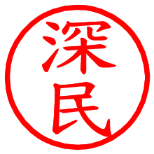 [朱肉の色]を選び、入力窓に“深民”と入力して[生成]ボタンを押すと、印影が更新され、リンクから電子印鑑(デジタル印影)がダウンロードできます。 電子印鑑「深民」の作り方文字表示が変なときや、文字バランスが悪いときは[字形切替]のチェックボックスでON/OFFを切り替え[生成]しなおしてください。 生成される画像は通常の印影「深民.png」と、にじみを表現した少し太めの印影「深民B.png」の背面透過PNG形式2種と、鮮明なPDF形式の印影「深民.pdf」の計3種類です。 朱肉の微妙な色の違いを7色で表現しました。デフォルト(左端)は、JISが定めた朱肉の色のマンセル値(7.5R 5/14)をRGB値(217,66,54)に変換したものになっています。 「電子透かし」にチェックを入れて[生成]ボタンを押すと、タイムスタンプを電子透かしとして埋め込んだセキュアな電子印鑑が作れます。詳細は別ページの「タイムスタンプと電子透かし」でご覧ください。 深民さんの日付印が作れます。「日付スタンプメーカー」は、社内向けの書類に利用されることの多い日付印(データ印)が無料で作れるWebアプリケーションです。中段に日付が入り、上段と下段は、ともに8文字まで文字が入ります。 ![]() 古代文字で落款印が作れます。「落款スタンプメーカー」で作品を引き立たせる落款印が作れます。