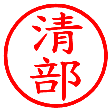 [朱肉の色]を選び、入力窓に“清部”と入力して[生成]ボタンを押すと、印影が更新され、リンクから電子印鑑(デジタル印影)がダウンロードできます。 電子印鑑「清部」の作り方文字表示が変なときや、文字バランスが悪いときは[字形切替]のチェックボックスでON/OFFを切り替え[生成]しなおしてください。 生成される画像は通常の印影「清部.png」と、にじみを表現した少し太めの印影「清部B.png」の背面透過PNG形式2種と、鮮明なPDF形式の印影「清部.pdf」の計3種類です。 朱肉の微妙な色の違いを7色で表現しました。デフォルト(左端)は、JISが定めた朱肉の色のマンセル値(7.5R 5/14)をRGB値(217,66,54)に変換したものになっています。 「電子透かし」にチェックを入れて[生成]ボタンを押すと、タイムスタンプを電子透かしとして埋め込んだセキュアな電子印鑑が作れます。詳細は別ページの「タイムスタンプと電子透かし」でご覧ください。 清部さんの日付印が作れます。「日付スタンプメーカー」は、社内向けの書類に利用されることの多い日付印(データ印)が無料で作れるWebアプリケーションです。中段に日付が入り、上段と下段は、ともに8文字まで文字が入ります。 ![]() 古代文字で落款印が作れます。「落款スタンプメーカー」で作品を引き立たせる落款印が作れます。