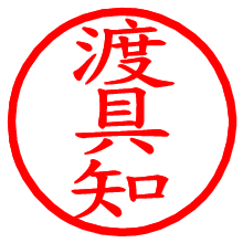 [朱肉の色]を選び、入力窓に“渡具知”と入力して[生成]ボタンを押すと、印影が更新され、リンクから電子印鑑(デジタル印影)がダウンロードできます。 電子印鑑「渡具知」の作り方文字表示が変なときや、文字バランスが悪いときは[字形切替]のチェックボックスでON/OFFを切り替え[生成]しなおしてください。 生成される画像は通常の印影「渡具知.png」と、にじみを表現した少し太めの印影「渡具知B.png」の背面透過PNG形式2種と、鮮明なPDF形式の印影「渡具知.pdf」の計3種類です。 朱肉の微妙な色の違いを7色で表現しました。デフォルト(左端)は、JISが定めた朱肉の色のマンセル値(7.5R 5/14)をRGB値(217,66,54)に変換したものになっています。 「電子透かし」にチェックを入れて[生成]ボタンを押すと、タイムスタンプを電子透かしとして埋め込んだセキュアな電子印鑑が作れます。詳細は別ページの「タイムスタンプと電子透かし」でご覧ください。 渡具知さんの日付印が作れます。「日付スタンプメーカー」は、社内向けの書類に利用されることの多い日付印(データ印)が無料で作れるWebアプリケーションです。中段に日付が入り、上段と下段は、ともに8文字まで文字が入ります。 ![]() 古代文字で落款印が作れます。「落款スタンプメーカー」で作品を引き立たせる落款印が作れます。