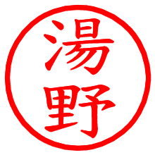 [朱肉の色]を選び、入力窓に“湯野”と入力して[生成]ボタンを押すと、印影が更新され、リンクから電子印鑑(デジタル印影)がダウンロードできます。 電子印鑑「湯野」の作り方文字表示が変なときや、文字バランスが悪いときは[字形切替]のチェックボックスでON/OFFを切り替え[生成]しなおしてください。 生成される画像は通常の印影「湯野.png」と、にじみを表現した少し太めの印影「湯野B.png」の背面透過PNG形式2種と、鮮明なPDF形式の印影「湯野.pdf」の計3種類です。 朱肉の微妙な色の違いを7色で表現しました。デフォルト(左端)は、JISが定めた朱肉の色のマンセル値(7.5R 5/14)をRGB値(217,66,54)に変換したものになっています。 「電子透かし」にチェックを入れて[生成]ボタンを押すと、タイムスタンプを電子透かしとして埋め込んだセキュアな電子印鑑が作れます。詳細は別ページの「タイムスタンプと電子透かし」でご覧ください。 湯野さんの日付印が作れます。「日付スタンプメーカー」は、社内向けの書類に利用されることの多い日付印(データ印)が無料で作れるWebアプリケーションです。中段に日付が入り、上段と下段は、ともに8文字まで文字が入ります。 ![]() 古代文字で落款印が作れます。「落款スタンプメーカー」で作品を引き立たせる落款印が作れます。