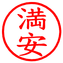 [朱肉の色]を選び、入力窓に“満安”と入力して[生成]ボタンを押すと、印影が更新され、リンクから電子印鑑(デジタル印影)がダウンロードできます。 電子印鑑「満安」の作り方文字表示が変なときや、文字バランスが悪いときは[字形切替]のチェックボックスでON/OFFを切り替え[生成]しなおしてください。 生成される画像は通常の印影「満安.png」と、にじみを表現した少し太めの印影「満安B.png」の背面透過PNG形式2種と、鮮明なPDF形式の印影「満安.pdf」の計3種類です。 朱肉の微妙な色の違いを7色で表現しました。デフォルト(左端)は、JISが定めた朱肉の色のマンセル値(7.5R 5/14)をRGB値(217,66,54)に変換したものになっています。 「電子透かし」にチェックを入れて[生成]ボタンを押すと、タイムスタンプを透かしとして埋め込んだセキュアな電子印鑑が作れます。詳細は別ページの「電子透かしとタイムスタンプ」でご覧ください。 満安さんの日付印が作れます。「日付スタンプメーカー」は、社内向けの書類に利用されることの多い日付印(データ印)が無料で作れるWebアプリケーションです。中段に日付が入り、上段と下段は、ともに8文字まで文字が入ります。 ![]() 古代文字で落款印が作れます。「落款スタンプメーカー」で作品を引き立たせる落款印が作れます。