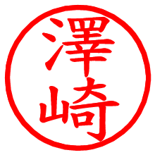 [朱肉の色]を選び、入力窓に“澤崎”と入力して[生成]ボタンを押すと、印影が更新され、リンクから電子印鑑(デジタル印影)がダウンロードできます。 電子印鑑「澤崎」の作り方文字表示が変なときや、文字バランスが悪いときは[字形切替]のチェックボックスでON/OFFを切り替え[生成]しなおしてください。 生成される画像は通常の印影「澤崎.png」と、にじみを表現した少し太めの印影「澤崎B.png」の背面透過PNG形式2種と、鮮明なPDF形式の印影「澤崎.pdf」の計3種類です。 朱肉の微妙な色の違いを7色で表現しました。デフォルト(左端)は、JISが定めた朱肉の色のマンセル値(7.5R 5/14)をRGB値(217,66,54)に変換したものになっています。 「電子透かし」にチェックを入れて[生成]ボタンを押すと、タイムスタンプを電子透かしとして埋め込んだセキュアな電子印鑑が作れます。詳細は別ページの「タイムスタンプと電子透かし」でご覧ください。 澤崎さんの日付印が作れます。「日付スタンプメーカー」は、社内向けの書類に利用されることの多い日付印(データ印)が無料で作れるWebアプリケーションです。中段に日付が入り、上段と下段は、ともに8文字まで文字が入ります。 ![]() 古代文字で落款印が作れます。「落款スタンプメーカー」で作品を引き立たせる落款印が作れます。