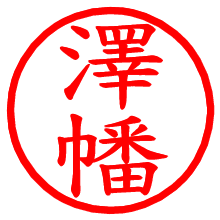 [朱肉の色]を選び、入力窓に“澤幡”と入力して[生成]ボタンを押すと、印影が更新され、リンクから電子印鑑(デジタル印影)がダウンロードできます。 電子印鑑「澤幡」の作り方文字表示が変なときや、文字バランスが悪いときは[字形切替]のチェックボックスでON/OFFを切り替え[生成]しなおしてください。 生成される画像は通常の印影「澤幡.png」と、にじみを表現した少し太めの印影「澤幡B.png」の背面透過PNG形式2種と、鮮明なPDF形式の印影「澤幡.pdf」の計3種類です。 朱肉の微妙な色の違いを7色で表現しました。デフォルト(左端)は、JISが定めた朱肉の色のマンセル値(7.5R 5/14)をRGB値(217,66,54)に変換したものになっています。 「電子透かし」にチェックを入れて[生成]ボタンを押すと、タイムスタンプを電子透かしとして埋め込んだセキュアな電子印鑑が作れます。詳細は別ページの「タイムスタンプと電子透かし」でご覧ください。 澤幡さんの日付印が作れます。「日付スタンプメーカー」は、社内向けの書類に利用されることの多い日付印(データ印)が無料で作れるWebアプリケーションです。中段に日付が入り、上段と下段は、ともに8文字まで文字が入ります。 ![]() 古代文字で落款印が作れます。「落款スタンプメーカー」で作品を引き立たせる落款印が作れます。