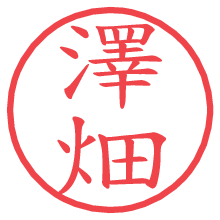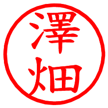 [朱肉の色]を選び、入力窓に“澤畑”と入力して[生成]ボタンを押すと、印影が更新され、リンクから電子印鑑(デジタル印影)がダウンロードできます。 電子印鑑「澤畑」の作り方文字表示が変なときや、文字バランスが悪いときは[字形切替]のチェックボックスでON/OFFを切り替え[生成]しなおしてください。 生成される画像は通常の印影「澤畑.png」と、にじみを表現した少し太めの印影「澤畑B.png」の背面透過PNG形式2種と、鮮明なPDF形式の印影「澤畑.pdf」の計3種類です。 朱肉の微妙な色の違いを7色で表現しました。デフォルト(左端)は、JISが定めた朱肉の色のマンセル値(7.5R 5/14)をRGB値(217,66,54)に変換したものになっています。 「電子透かし」にチェックを入れて[生成]ボタンを押すと、タイムスタンプを電子透かしとして埋め込んだセキュアな電子印鑑が作れます。詳細は別ページの「タイムスタンプと電子透かし」でご覧ください。 澤畑さんの日付印が作れます。「日付スタンプメーカー」は、社内向けの書類に利用されることの多い日付印(データ印)が無料で作れるWebアプリケーションです。中段に日付が入り、上段と下段は、ともに8文字まで文字が入ります。 ![]() 古代文字で落款印が作れます。「落款スタンプメーカー」で作品を引き立たせる落款印が作れます。