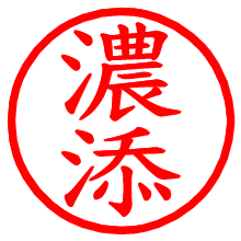 [朱肉の色]を選び、入力窓に“濃添”と入力して[生成]ボタンを押すと、印影が更新され、リンクから電子印鑑(デジタル印影)がダウンロードできます。 電子印鑑「濃添」の作り方文字表示が変なときや、文字バランスが悪いときは[字形切替]のチェックボックスでON/OFFを切り替え[生成]しなおしてください。 生成される画像は通常の印影「濃添.png」と、にじみを表現した少し太めの印影「濃添B.png」の背面透過PNG形式2種と、鮮明なPDF形式の印影「濃添.pdf」の計3種類です。 朱肉の微妙な色の違いを7色で表現しました。デフォルト(左端)は、JISが定めた朱肉の色のマンセル値(7.5R 5/14)をRGB値(217,66,54)に変換したものになっています。 「電子透かし」にチェックを入れて[生成]ボタンを押すと、タイムスタンプを電子透かしとして埋め込んだセキュアな電子印鑑が作れます。詳細は別ページの「タイムスタンプと電子透かし」でご覧ください。 濃添さんの日付印が作れます。「日付スタンプメーカー」は、社内向けの書類に利用されることの多い日付印(データ印)が無料で作れるWebアプリケーションです。中段に日付が入り、上段と下段は、ともに8文字まで文字が入ります。 ![]() 古代文字で落款印が作れます。「落款スタンプメーカー」で作品を引き立たせる落款印が作れます。