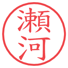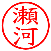 [朱肉の色]を選び、入力窓に“瀬河”と入力して[生成]ボタンを押すと、印影が更新され、リンクから電子印鑑(デジタル印影)がダウンロードできます。 電子印鑑「瀬河」の作り方文字表示が変なときや、文字バランスが悪いときは[字形切替]のチェックボックスでON/OFFを切り替え[生成]しなおしてください。 生成される画像は通常の印影「瀬河.png」と、にじみを表現した少し太めの印影「瀬河B.png」の背面透過PNG形式2種と、鮮明なPDF形式の印影「瀬河.pdf」の計3種類です。 朱肉の微妙な色の違いを7色で表現しました。デフォルト(左端)は、JISが定めた朱肉の色のマンセル値(7.5R 5/14)をRGB値(217,66,54)に変換したものになっています。 「電子透かし」にチェックを入れて[生成]ボタンを押すと、タイムスタンプを透かしとして埋め込んだセキュアな電子印鑑が作れます。詳細は別ページの「電子透かしとタイムスタンプ」でご覧ください。  瀬河さんの日付印が作れます。「日付スタンプメーカー」は、社内向けの書類に利用されることの多い日付印(データ印)が無料で作れるWebアプリケーションです。中段に日付が入り、上段と下段は、ともに8文字まで文字が入ります。 ![]()  古代文字で落款印が作れます。「落款スタンプメーカー」で作品を引き立たせる落款印が作れます。