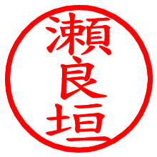 [朱肉の色]を選び、入力窓に“瀬良垣”と入力して[生成]ボタンを押すと、印影が更新され、リンクから電子印鑑(デジタル印影)がダウンロードできます。 電子印鑑「瀬良垣」の作り方文字表示が変なときや、文字バランスが悪いときは[字形切替]のチェックボックスでON/OFFを切り替え[生成]しなおしてください。 生成される画像は通常の印影「瀬良垣.png」と、にじみを表現した少し太めの印影「瀬良垣B.png」の背面透過PNG形式2種と、鮮明なPDF形式の印影「瀬良垣.pdf」の計3種類です。 朱肉の微妙な色の違いを7色で表現しました。デフォルト(左端)は、JISが定めた朱肉の色のマンセル値(7.5R 5/14)をRGB値(217,66,54)に変換したものになっています。 「電子透かし」にチェックを入れて[生成]ボタンを押すと、タイムスタンプを電子透かしとして埋め込んだセキュアな電子印鑑が作れます。詳細は別ページの「タイムスタンプと電子透かし」でご覧ください。 瀬良垣さんの日付印が作れます。「日付スタンプメーカー」は、社内向けの書類に利用されることの多い日付印(データ印)が無料で作れるWebアプリケーションです。中段に日付が入り、上段と下段は、ともに8文字まで文字が入ります。 ![]() 古代文字で落款印が作れます。「落款スタンプメーカー」で作品を引き立たせる落款印が作れます。