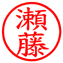 [朱肉の色]を選び、入力窓に“瀬藤”と入力して[生成]ボタンを押すと、印影が更新され、リンクから電子印鑑(デジタル印影)がダウンロードできます。 電子印鑑「瀬藤」の作り方文字表示が変なときや、文字バランスが悪いときは[字形切替]のチェックボックスでON/OFFを切り替え[生成]しなおしてください。 生成される画像は通常の印影「瀬藤.png」と、にじみを表現した少し太めの印影「瀬藤B.png」の背面透過PNG形式2種と、鮮明なPDF形式の印影「瀬藤.pdf」の計3種類です。 朱肉の微妙な色の違いを7色で表現しました。デフォルト(左端)は、JISが定めた朱肉の色のマンセル値(7.5R 5/14)をRGB値(217,66,54)に変換したものになっています。 「電子透かし」にチェックを入れて[生成]ボタンを押すと、タイムスタンプを電子透かしとして埋め込んだセキュアな電子印鑑が作れます。詳細は別ページの「タイムスタンプと電子透かし」でご覧ください。 瀬藤さんの日付印が作れます。「日付スタンプメーカー」は、社内向けの書類に利用されることの多い日付印(データ印)が無料で作れるWebアプリケーションです。中段に日付が入り、上段と下段は、ともに8文字まで文字が入ります。 ![]() 古代文字で落款印が作れます。「落款スタンプメーカー」で作品を引き立たせる落款印が作れます。