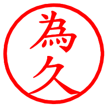 [朱肉の色]を選び、入力窓に“為久”と入力して[生成]ボタンを押すと、印影が更新され、リンクから電子印鑑(デジタル印影)がダウンロードできます。 電子印鑑「為久」の作り方文字表示が変なときや、文字バランスが悪いときは[字形切替]のチェックボックスでON/OFFを切り替え[生成]しなおしてください。 生成される画像は通常の印影「為久.png」と、にじみを表現した少し太めの印影「為久B.png」の背面透過PNG形式2種と、鮮明なPDF形式の印影「為久.pdf」の計3種類です。 朱肉の微妙な色の違いを7色で表現しました。デフォルト(左端)は、JISが定めた朱肉の色のマンセル値(7.5R 5/14)をRGB値(217,66,54)に変換したものになっています。 「電子透かし」にチェックを入れて[生成]ボタンを押すと、タイムスタンプを透かしとして埋め込んだセキュアな電子印鑑が作れます。詳細は別ページの「電子透かしとタイムスタンプ」でご覧ください。 為久さんの日付印が作れます。「日付スタンプメーカー」は、社内向けの書類に利用されることの多い日付印(データ印)が無料で作れるWebアプリケーションです。中段に日付が入り、上段と下段は、ともに8文字まで文字が入ります。 ![]() 古代文字で落款印が作れます。「落款スタンプメーカー」で作品を引き立たせる落款印が作れます。
