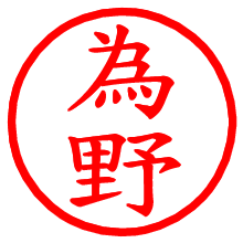 [朱肉の色]を選び、入力窓に“為野”と入力して[生成]ボタンを押すと、印影が更新され、リンクから電子印鑑(デジタル印影)がダウンロードできます。 電子印鑑「為野」の作り方文字表示が変なときや、文字バランスが悪いときは[字形切替]のチェックボックスでON/OFFを切り替え[生成]しなおしてください。 生成される画像は通常の印影「為野.png」と、にじみを表現した少し太めの印影「為野B.png」の背面透過PNG形式2種と、鮮明なPDF形式の印影「為野.pdf」の計3種類です。 朱肉の微妙な色の違いを7色で表現しました。デフォルト(左端)は、JISが定めた朱肉の色のマンセル値(7.5R 5/14)をRGB値(217,66,54)に変換したものになっています。 「電子透かし」にチェックを入れて[生成]ボタンを押すと、タイムスタンプを電子透かしとして埋め込んだセキュアな電子印鑑が作れます。詳細は別ページの「タイムスタンプと電子透かし」でご覧ください。 為野さんの日付印が作れます。「日付スタンプメーカー」は、社内向けの書類に利用されることの多い日付印(データ印)が無料で作れるWebアプリケーションです。中段に日付が入り、上段と下段は、ともに8文字まで文字が入ります。 ![]() 古代文字で落款印が作れます。「落款スタンプメーカー」で作品を引き立たせる落款印が作れます。