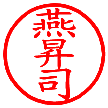 [朱肉の色]を選び、入力窓に“燕昇司”と入力して[生成]ボタンを押すと、印影が更新され、リンクから電子印鑑(デジタル印影)がダウンロードできます。 電子印鑑「燕昇司」の作り方文字表示が変なときや、文字バランスが悪いときは[字形切替]のチェックボックスでON/OFFを切り替え[生成]しなおしてください。 生成される画像は通常の印影「燕昇司.png」と、にじみを表現した少し太めの印影「燕昇司B.png」の背面透過PNG形式2種と、鮮明なPDF形式の印影「燕昇司.pdf」の計3種類です。 朱肉の微妙な色の違いを7色で表現しました。デフォルト(左端)は、JISが定めた朱肉の色のマンセル値(7.5R 5/14)をRGB値(217,66,54)に変換したものになっています。 「電子透かし」にチェックを入れて[生成]ボタンを押すと、タイムスタンプを電子透かしとして埋め込んだセキュアな電子印鑑が作れます。詳細は別ページの「タイムスタンプと電子透かし」でご覧ください。 燕昇司さんの日付印が作れます。「日付スタンプメーカー」は、社内向けの書類に利用されることの多い日付印(データ印)が無料で作れるWebアプリケーションです。中段に日付が入り、上段と下段は、ともに8文字まで文字が入ります。 ![]() 古代文字で落款印が作れます。「落款スタンプメーカー」で作品を引き立たせる落款印が作れます。