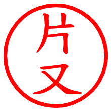[朱肉の色]を選び、入力窓に“片又”と入力して[生成]ボタンを押すと、印影が更新され、リンクから電子印鑑(デジタル印影)がダウンロードできます。 電子印鑑「片又」の作り方文字表示が変なときや、文字バランスが悪いときは[字形切替]のチェックボックスでON/OFFを切り替え[生成]しなおしてください。 生成される画像は通常の印影「片又.png」と、にじみを表現した少し太めの印影「片又B.png」の背面透過PNG形式2種と、鮮明なPDF形式の印影「片又.pdf」の計3種類です。 朱肉の微妙な色の違いを7色で表現しました。デフォルト(左端)は、JISが定めた朱肉の色のマンセル値(7.5R 5/14)をRGB値(217,66,54)に変換したものになっています。 「電子透かし」にチェックを入れて[生成]ボタンを押すと、タイムスタンプを電子透かしとして埋め込んだセキュアな電子印鑑が作れます。詳細は別ページの「タイムスタンプと電子透かし」でご覧ください。 片又さんの日付印が作れます。「日付スタンプメーカー」は、社内向けの書類に利用されることの多い日付印(データ印)が無料で作れるWebアプリケーションです。中段に日付が入り、上段と下段は、ともに8文字まで文字が入ります。 ![]() 古代文字で落款印が作れます。「落款スタンプメーカー」で作品を引き立たせる落款印が作れます。