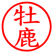 [朱肉の色]を選び、入力窓に“牡鹿”と入力して[生成]ボタンを押すと、印影が更新され、リンクから電子印鑑(デジタル印影)がダウンロードできます。 電子印鑑「牡鹿」の作り方文字表示が変なときや、文字バランスが悪いときは[字形切替]のチェックボックスでON/OFFを切り替え[生成]しなおしてください。 生成される画像は通常の印影「牡鹿.png」と、にじみを表現した少し太めの印影「牡鹿B.png」の背面透過PNG形式2種と、鮮明なPDF形式の印影「牡鹿.pdf」の計3種類です。 朱肉の微妙な色の違いを7色で表現しました。デフォルト(左端)は、JISが定めた朱肉の色のマンセル値(7.5R 5/14)をRGB値(217,66,54)に変換したものになっています。 「電子透かし」にチェックを入れて[生成]ボタンを押すと、タイムスタンプを電子透かしとして埋め込んだセキュアな電子印鑑が作れます。詳細は別ページの「タイムスタンプと電子透かし」でご覧ください。 牡鹿さんの日付印が作れます。「日付スタンプメーカー」は、社内向けの書類に利用されることの多い日付印(データ印)が無料で作れるWebアプリケーションです。中段に日付が入り、上段と下段は、ともに8文字まで文字が入ります。 ![]() 古代文字で落款印が作れます。「落款スタンプメーカー」で作品を引き立たせる落款印が作れます。