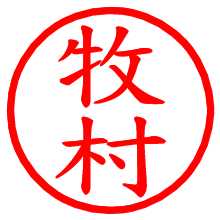 [朱肉の色]を選び、入力窓に“牧村”と入力して[生成]ボタンを押すと、印影が更新され、リンクから電子印鑑(デジタル印影)がダウンロードできます。 電子印鑑「牧村」の作り方文字表示が変なときや、文字バランスが悪いときは[字形切替]のチェックボックスでON/OFFを切り替え[生成]しなおしてください。 生成される画像は通常の印影「牧村.png」と、にじみを表現した少し太めの印影「牧村B.png」の背面透過PNG形式2種と、鮮明なPDF形式の印影「牧村.pdf」の計3種類です。 朱肉の微妙な色の違いを7色で表現しました。デフォルト(左端)は、JISが定めた朱肉の色のマンセル値(7.5R 5/14)をRGB値(217,66,54)に変換したものになっています。 「電子透かし」にチェックを入れて[生成]ボタンを押すと、タイムスタンプを透かしとして埋め込んだセキュアな電子印鑑が作れます。詳細は別ページの「電子透かしとタイムスタンプ」でご覧ください。 牧村さんの日付印が作れます。「日付スタンプメーカー」は、社内向けの書類に利用されることの多い日付印(データ印)が無料で作れるWebアプリケーションです。中段に日付が入り、上段と下段は、ともに8文字まで文字が入ります。 ![]() 古代文字で落款印が作れます。「落款スタンプメーカー」で作品を引き立たせる落款印が作れます。