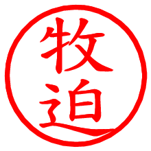 [朱肉の色]を選び、入力窓に“牧迫”と入力して[生成]ボタンを押すと、印影が更新され、リンクから電子印鑑(デジタル印影)がダウンロードできます。 電子印鑑「牧迫」の作り方文字表示が変なときや、文字バランスが悪いときは[字形切替]のチェックボックスでON/OFFを切り替え[生成]しなおしてください。 生成される画像は通常の印影「牧迫.png」と、にじみを表現した少し太めの印影「牧迫B.png」の背面透過PNG形式2種と、鮮明なPDF形式の印影「牧迫.pdf」の計3種類です。 朱肉の微妙な色の違いを7色で表現しました。デフォルト(左端)は、JISが定めた朱肉の色のマンセル値(7.5R 5/14)をRGB値(217,66,54)に変換したものになっています。 「電子透かし」にチェックを入れて[生成]ボタンを押すと、タイムスタンプを電子透かしとして埋め込んだセキュアな電子印鑑が作れます。詳細は別ページの「タイムスタンプと電子透かし」でご覧ください。 牧迫さんの日付印が作れます。「日付スタンプメーカー」は、社内向けの書類に利用されることの多い日付印(データ印)が無料で作れるWebアプリケーションです。中段に日付が入り、上段と下段は、ともに8文字まで文字が入ります。 ![]() 古代文字で落款印が作れます。「落款スタンプメーカー」で作品を引き立たせる落款印が作れます。