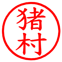 [朱肉の色]を選び、入力窓に“猪村”と入力して[生成]ボタンを押すと、印影が更新され、リンクから電子印鑑(デジタル印影)がダウンロードできます。 電子印鑑「猪村」の作り方文字表示が変なときや、文字バランスが悪いときは[字形切替]のチェックボックスでON/OFFを切り替え[生成]しなおしてください。 生成される画像は通常の印影「猪村.png」と、にじみを表現した少し太めの印影「猪村B.png」の背面透過PNG形式2種と、鮮明なPDF形式の印影「猪村.pdf」の計3種類です。 朱肉の微妙な色の違いを7色で表現しました。デフォルト(左端)は、JISが定めた朱肉の色のマンセル値(7.5R 5/14)をRGB値(217,66,54)に変換したものになっています。 「電子透かし」にチェックを入れて[生成]ボタンを押すと、タイムスタンプを電子透かしとして埋め込んだセキュアな電子印鑑が作れます。詳細は別ページの「タイムスタンプと電子透かし」でご覧ください。 猪村さんの日付印が作れます。「日付スタンプメーカー」は、社内向けの書類に利用されることの多い日付印(データ印)が無料で作れるWebアプリケーションです。中段に日付が入り、上段と下段は、ともに8文字まで文字が入ります。 ![]() 古代文字で落款印が作れます。「落款スタンプメーカー」で作品を引き立たせる落款印が作れます。