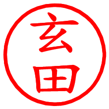 [朱肉の色]を選び、入力窓に“玄田”と入力して[生成]ボタンを押すと、印影が更新され、リンクから電子印鑑(デジタル印影)がダウンロードできます。 電子印鑑「玄田」の作り方文字表示が変なときや、文字バランスが悪いときは[字形切替]のチェックボックスでON/OFFを切り替え[生成]しなおしてください。 生成される画像は通常の印影「玄田.png」と、にじみを表現した少し太めの印影「玄田B.png」の背面透過PNG形式2種と、鮮明なPDF形式の印影「玄田.pdf」の計3種類です。 朱肉の微妙な色の違いを7色で表現しました。デフォルト(左端)は、JISが定めた朱肉の色のマンセル値(7.5R 5/14)をRGB値(217,66,54)に変換したものになっています。 「電子透かし」にチェックを入れて[生成]ボタンを押すと、タイムスタンプを透かしとして埋め込んだセキュアな電子印鑑が作れます。詳細は別ページの「電子透かしとタイムスタンプ」でご覧ください。 玄田さんの日付印が作れます。「日付スタンプメーカー」は、社内向けの書類に利用されることの多い日付印(データ印)が無料で作れるWebアプリケーションです。中段に日付が入り、上段と下段は、ともに8文字まで文字が入ります。 ![]() 古代文字で落款印が作れます。「落款スタンプメーカー」で作品を引き立たせる落款印が作れます。