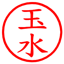 [朱肉の色]を選び、入力窓に“玉水”と入力して[生成]ボタンを押すと、印影が更新され、リンクから電子印鑑(デジタル印影)がダウンロードできます。 電子印鑑「玉水」の作り方文字表示が変なときや、文字バランスが悪いときは[字形切替]のチェックボックスでON/OFFを切り替え[生成]しなおしてください。 生成される画像は通常の印影「玉水.png」と、にじみを表現した少し太めの印影「玉水B.png」の背面透過PNG形式2種と、鮮明なPDF形式の印影「玉水.pdf」の計3種類です。 朱肉の微妙な色の違いを7色で表現しました。デフォルト(左端)は、JISが定めた朱肉の色のマンセル値(7.5R 5/14)をRGB値(217,66,54)に変換したものになっています。 「電子透かし」にチェックを入れて[生成]ボタンを押すと、タイムスタンプを電子透かしとして埋め込んだセキュアな電子印鑑が作れます。詳細は別ページの「タイムスタンプと電子透かし」でご覧ください。 玉水さんの日付印が作れます。「日付スタンプメーカー」は、社内向けの書類に利用されることの多い日付印(データ印)が無料で作れるWebアプリケーションです。中段に日付が入り、上段と下段は、ともに8文字まで文字が入ります。 ![]() 古代文字で落款印が作れます。「落款スタンプメーカー」で作品を引き立たせる落款印が作れます。