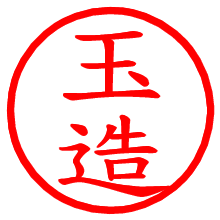 [朱肉の色]を選び、入力窓に“玉造”と入力して[生成]ボタンを押すと、印影が更新され、リンクから電子印鑑(デジタル印影)がダウンロードできます。 電子印鑑「玉造」の作り方文字表示が変なときや、文字バランスが悪いときは[字形切替]のチェックボックスでON/OFFを切り替え[生成]しなおしてください。 生成される画像は通常の印影「玉造.png」と、にじみを表現した少し太めの印影「玉造B.png」の背面透過PNG形式2種と、鮮明なPDF形式の印影「玉造.pdf」の計3種類です。 朱肉の微妙な色の違いを7色で表現しました。デフォルト(左端)は、JISが定めた朱肉の色のマンセル値(7.5R 5/14)をRGB値(217,66,54)に変換したものになっています。 「電子透かし」にチェックを入れて[生成]ボタンを押すと、タイムスタンプを電子透かしとして埋め込んだセキュアな電子印鑑が作れます。詳細は別ページの「タイムスタンプと電子透かし」でご覧ください。 玉造さんの日付印が作れます。「日付スタンプメーカー」は、社内向けの書類に利用されることの多い日付印(データ印)が無料で作れるWebアプリケーションです。中段に日付が入り、上段と下段は、ともに8文字まで文字が入ります。 ![]() 古代文字で落款印が作れます。「落款スタンプメーカー」で作品を引き立たせる落款印が作れます。