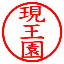 [朱肉の色]を選び、入力窓に“現王園”と入力して[生成]ボタンを押すと、印影が更新され、リンクから電子印鑑(デジタル印影)がダウンロードできます。 電子印鑑「現王園」の作り方文字表示が変なときや、文字バランスが悪いときは[字形切替]のチェックボックスでON/OFFを切り替え[生成]しなおしてください。 生成される画像は通常の印影「現王園.png」と、にじみを表現した少し太めの印影「現王園B.png」の背面透過PNG形式2種と、鮮明なPDF形式の印影「現王園.pdf」の計3種類です。 朱肉の微妙な色の違いを7色で表現しました。デフォルト(左端)は、JISが定めた朱肉の色のマンセル値(7.5R 5/14)をRGB値(217,66,54)に変換したものになっています。 「電子透かし」にチェックを入れて[生成]ボタンを押すと、タイムスタンプを電子透かしとして埋め込んだセキュアな電子印鑑が作れます。詳細は別ページの「タイムスタンプと電子透かし」でご覧ください。 現王園さんの日付印が作れます。「日付スタンプメーカー」は、社内向けの書類に利用されることの多い日付印(データ印)が無料で作れるWebアプリケーションです。中段に日付が入り、上段と下段は、ともに8文字まで文字が入ります。 ![]() 古代文字で落款印が作れます。「落款スタンプメーカー」で作品を引き立たせる落款印が作れます。