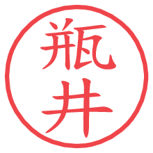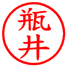 [朱肉の色]を選び、入力窓に“瓶井”と入力して[生成]ボタンを押すと、印影が更新され、リンクから電子印鑑(デジタル印影)がダウンロードできます。 電子印鑑「瓶井」の作り方文字表示が変なときや、文字バランスが悪いときは[字形切替]のチェックボックスでON/OFFを切り替え[生成]しなおしてください。 生成される画像は通常の印影「瓶井.png」と、にじみを表現した少し太めの印影「瓶井B.png」の背面透過PNG形式2種と、鮮明なPDF形式の印影「瓶井.pdf」の計3種類です。 朱肉の微妙な色の違いを7色で表現しました。デフォルト(左端)は、JISが定めた朱肉の色のマンセル値(7.5R 5/14)をRGB値(217,66,54)に変換したものになっています。 「電子透かし」にチェックを入れて[生成]ボタンを押すと、タイムスタンプを透かしとして埋め込んだセキュアな電子印鑑が作れます。詳細は別ページの「電子透かしとタイムスタンプ」でご覧ください。 瓶井さんの日付印が作れます。「日付スタンプメーカー」は、社内向けの書類に利用されることの多い日付印(データ印)が無料で作れるWebアプリケーションです。中段に日付が入り、上段と下段は、ともに8文字まで文字が入ります。 ![]() 古代文字で落款印が作れます。「落款スタンプメーカー」で作品を引き立たせる落款印が作れます。
