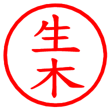 [朱肉の色]を選び、入力窓に“生木”と入力して[生成]ボタンを押すと、印影が更新され、リンクから電子印鑑(デジタル印影)がダウンロードできます。 電子印鑑「生木」の作り方文字表示が変なときや、文字バランスが悪いときは[字形切替]のチェックボックスでON/OFFを切り替え[生成]しなおしてください。 生成される画像は通常の印影「生木.png」と、にじみを表現した少し太めの印影「生木B.png」の背面透過PNG形式2種と、鮮明なPDF形式の印影「生木.pdf」の計3種類です。 朱肉の微妙な色の違いを7色で表現しました。デフォルト(左端)は、JISが定めた朱肉の色のマンセル値(7.5R 5/14)をRGB値(217,66,54)に変換したものになっています。 「電子透かし」にチェックを入れて[生成]ボタンを押すと、タイムスタンプを電子透かしとして埋め込んだセキュアな電子印鑑が作れます。詳細は別ページの「タイムスタンプと電子透かし」でご覧ください。 生木さんの日付印が作れます。「日付スタンプメーカー」は、社内向けの書類に利用されることの多い日付印(データ印)が無料で作れるWebアプリケーションです。中段に日付が入り、上段と下段は、ともに8文字まで文字が入ります。 ![]() 古代文字で落款印が作れます。「落款スタンプメーカー」で作品を引き立たせる落款印が作れます。