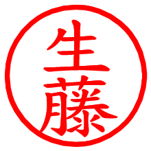[朱肉の色]を選び、入力窓に“生藤”と入力して[生成]ボタンを押すと、印影が更新され、リンクから電子印鑑(デジタル印影)がダウンロードできます。 電子印鑑「生藤」の作り方文字表示が変なときや、文字バランスが悪いときは[字形切替]のチェックボックスでON/OFFを切り替え[生成]しなおしてください。 生成される画像は通常の印影「生藤.png」と、にじみを表現した少し太めの印影「生藤B.png」の背面透過PNG形式2種と、鮮明なPDF形式の印影「生藤.pdf」の計3種類です。 朱肉の微妙な色の違いを7色で表現しました。デフォルト(左端)は、JISが定めた朱肉の色のマンセル値(7.5R 5/14)をRGB値(217,66,54)に変換したものになっています。 「電子透かし」にチェックを入れて[生成]ボタンを押すと、タイムスタンプを電子透かしとして埋め込んだセキュアな電子印鑑が作れます。詳細は別ページの「タイムスタンプと電子透かし」でご覧ください。 生藤さんの日付印が作れます。「日付スタンプメーカー」は、社内向けの書類に利用されることの多い日付印(データ印)が無料で作れるWebアプリケーションです。中段に日付が入り、上段と下段は、ともに8文字まで文字が入ります。 ![]() 古代文字で落款印が作れます。「落款スタンプメーカー」で作品を引き立たせる落款印が作れます。