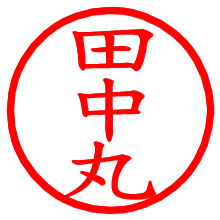 [朱肉の色]を選び、入力窓に“田中丸”と入力して[生成]ボタンを押すと、印影が更新され、リンクから電子印鑑(デジタル印影)がダウンロードできます。 電子印鑑「田中丸」の作り方文字表示が変なときや、文字バランスが悪いときは[字形切替]のチェックボックスでON/OFFを切り替え[生成]しなおしてください。 生成される画像は通常の印影「田中丸.png」と、にじみを表現した少し太めの印影「田中丸B.png」の背面透過PNG形式2種と、鮮明なPDF形式の印影「田中丸.pdf」の計3種類です。 朱肉の微妙な色の違いを7色で表現しました。デフォルト(左端)は、JISが定めた朱肉の色のマンセル値(7.5R 5/14)をRGB値(217,66,54)に変換したものになっています。 「電子透かし」にチェックを入れて[生成]ボタンを押すと、タイムスタンプを電子透かしとして埋め込んだセキュアな電子印鑑が作れます。詳細は別ページの「タイムスタンプと電子透かし」でご覧ください。 田中丸さんの日付印が作れます。「日付スタンプメーカー」は、社内向けの書類に利用されることの多い日付印(データ印)が無料で作れるWebアプリケーションです。中段に日付が入り、上段と下段は、ともに8文字まで文字が入ります。 ![]() 古代文字で落款印が作れます。「落款スタンプメーカー」で作品を引き立たせる落款印が作れます。