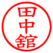 [朱肉の色]を選び、入力窓に“田中舘”と入力して[生成]ボタンを押すと、印影が更新され、リンクから電子印鑑(デジタル印影)がダウンロードできます。 電子印鑑「田中舘」の作り方文字表示が変なときや、文字バランスが悪いときは[字形切替]のチェックボックスでON/OFFを切り替え[生成]しなおしてください。 生成される画像は通常の印影「田中舘.png」と、にじみを表現した少し太めの印影「田中舘B.png」の背面透過PNG形式2種と、鮮明なPDF形式の印影「田中舘.pdf」の計3種類です。 朱肉の微妙な色の違いを7色で表現しました。デフォルト(左端)は、JISが定めた朱肉の色のマンセル値(7.5R 5/14)をRGB値(217,66,54)に変換したものになっています。 「電子透かし」にチェックを入れて[生成]ボタンを押すと、タイムスタンプを電子透かしとして埋め込んだセキュアな電子印鑑が作れます。詳細は別ページの「タイムスタンプと電子透かし」でご覧ください。 田中舘さんの日付印が作れます。「日付スタンプメーカー」は、社内向けの書類に利用されることの多い日付印(データ印)が無料で作れるWebアプリケーションです。中段に日付が入り、上段と下段は、ともに8文字まで文字が入ります。 ![]() 古代文字で落款印が作れます。「落款スタンプメーカー」で作品を引き立たせる落款印が作れます。