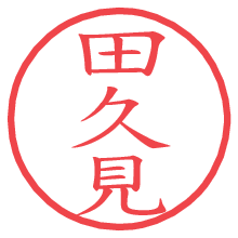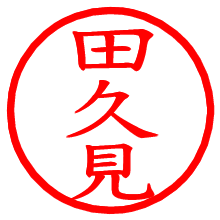 [朱肉の色]を選び、入力窓に“田久見”と入力して[生成]ボタンを押すと、印影が更新され、リンクから電子印鑑(デジタル印影)がダウンロードできます。 電子印鑑「田久見」の作り方文字表示が変なときや、文字バランスが悪いときは[字形切替]のチェックボックスでON/OFFを切り替え[生成]しなおしてください。 生成される画像は通常の印影「田久見.png」と、にじみを表現した少し太めの印影「田久見B.png」の背面透過PNG形式2種と、鮮明なPDF形式の印影「田久見.pdf」の計3種類です。 朱肉の微妙な色の違いを7色で表現しました。デフォルト(左端)は、JISが定めた朱肉の色のマンセル値(7.5R 5/14)をRGB値(217,66,54)に変換したものになっています。 「電子透かし」にチェックを入れて[生成]ボタンを押すと、タイムスタンプを電子透かしとして埋め込んだセキュアな電子印鑑が作れます。詳細は別ページの「タイムスタンプと電子透かし」でご覧ください。 田久見さんの日付印が作れます。「日付スタンプメーカー」は、社内向けの書類に利用されることの多い日付印(データ印)が無料で作れるWebアプリケーションです。中段に日付が入り、上段と下段は、ともに8文字まで文字が入ります。 ![]() 古代文字で落款印が作れます。「落款スタンプメーカー」で作品を引き立たせる落款印が作れます。
