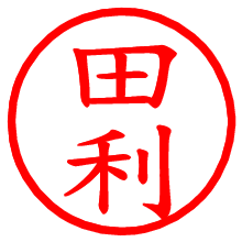 [朱肉の色]を選び、入力窓に“田利”と入力して[生成]ボタンを押すと、印影が更新され、リンクから電子印鑑(デジタル印影)がダウンロードできます。 電子印鑑「田利」の作り方文字表示が変なときや、文字バランスが悪いときは[字形切替]のチェックボックスでON/OFFを切り替え[生成]しなおしてください。 生成される画像は通常の印影「田利.png」と、にじみを表現した少し太めの印影「田利B.png」の背面透過PNG形式2種と、鮮明なPDF形式の印影「田利.pdf」の計3種類です。 朱肉の微妙な色の違いを7色で表現しました。デフォルト(左端)は、JISが定めた朱肉の色のマンセル値(7.5R 5/14)をRGB値(217,66,54)に変換したものになっています。 「電子透かし」にチェックを入れて[生成]ボタンを押すと、タイムスタンプを電子透かしとして埋め込んだセキュアな電子印鑑が作れます。詳細は別ページの「タイムスタンプと電子透かし」でご覧ください。 田利さんの日付印が作れます。「日付スタンプメーカー」は、社内向けの書類に利用されることの多い日付印(データ印)が無料で作れるWebアプリケーションです。中段に日付が入り、上段と下段は、ともに8文字まで文字が入ります。 ![]() 古代文字で落款印が作れます。「落款スタンプメーカー」で作品を引き立たせる落款印が作れます。