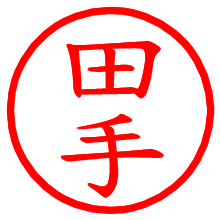 [朱肉の色]を選び、入力窓に“田手”と入力して[生成]ボタンを押すと、印影が更新され、リンクから電子印鑑(デジタル印影)がダウンロードできます。 電子印鑑「田手」の作り方文字表示が変なときや、文字バランスが悪いときは[字形切替]のチェックボックスでON/OFFを切り替え[生成]しなおしてください。 生成される画像は通常の印影「田手.png」と、にじみを表現した少し太めの印影「田手B.png」の背面透過PNG形式2種と、鮮明なPDF形式の印影「田手.pdf」の計3種類です。 朱肉の微妙な色の違いを7色で表現しました。デフォルト(左端)は、JISが定めた朱肉の色のマンセル値(7.5R 5/14)をRGB値(217,66,54)に変換したものになっています。 「電子透かし」にチェックを入れて[生成]ボタンを押すと、タイムスタンプを透かしとして埋め込んだセキュアな電子印鑑が作れます。詳細は別ページの「電子透かしとタイムスタンプ」でご覧ください。  田手さんの日付印が作れます。「日付スタンプメーカー」は、社内向けの書類に利用されることの多い日付印(データ印)が無料で作れるWebアプリケーションです。中段に日付が入り、上段と下段は、ともに8文字まで文字が入ります。 ![]()  古代文字で落款印が作れます。「落款スタンプメーカー」で作品を引き立たせる落款印が作れます。