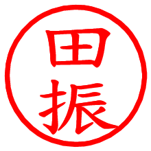 [朱肉の色]を選び、入力窓に“田振”と入力して[生成]ボタンを押すと、印影が更新され、リンクから電子印鑑(デジタル印影)がダウンロードできます。 電子印鑑「田振」の作り方文字表示が変なときや、文字バランスが悪いときは[字形切替]のチェックボックスでON/OFFを切り替え[生成]しなおしてください。 生成される画像は通常の印影「田振.png」と、にじみを表現した少し太めの印影「田振B.png」の背面透過PNG形式2種と、鮮明なPDF形式の印影「田振.pdf」の計3種類です。 朱肉の微妙な色の違いを7色で表現しました。デフォルト(左端)は、JISが定めた朱肉の色のマンセル値(7.5R 5/14)をRGB値(217,66,54)に変換したものになっています。 「電子透かし」にチェックを入れて[生成]ボタンを押すと、タイムスタンプを電子透かしとして埋め込んだセキュアな電子印鑑が作れます。詳細は別ページの「タイムスタンプと電子透かし」でご覧ください。 田振さんの日付印が作れます。「日付スタンプメーカー」は、社内向けの書類に利用されることの多い日付印(データ印)が無料で作れるWebアプリケーションです。中段に日付が入り、上段と下段は、ともに8文字まで文字が入ります。 ![]() 古代文字で落款印が作れます。「落款スタンプメーカー」で作品を引き立たせる落款印が作れます。