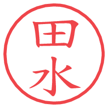 [朱肉の色]を選び、入力窓に“田水”と入力して[生成]ボタンを押すと、印影が更新され、リンクから電子印鑑(デジタル印影)がダウンロードできます。 電子印鑑「田水」の作り方文字表示が変なときや、文字バランスが悪いときは[字形切替]のチェックボックスでON/OFFを切り替え[生成]しなおしてください。 生成される画像は通常の印影「田水.png」と、にじみを表現した少し太めの印影「田水B.png」の背面透過PNG形式2種と、鮮明なPDF形式の印影「田水.pdf」の計3種類です。 朱肉の微妙な色の違いを7色で表現しました。デフォルト(左端)は、JISが定めた朱肉の色のマンセル値(7.5R 5/14)をRGB値(217,66,54)に変換したものになっています。 「電子透かし」にチェックを入れて[生成]ボタンを押すと、タイムスタンプを電子透かしとして埋め込んだセキュアな電子印鑑が作れます。詳細は別ページの「タイムスタンプと電子透かし」でご覧ください。 田水さんの日付印が作れます。「日付スタンプメーカー」は、社内向けの書類に利用されることの多い日付印(データ印)が無料で作れるWebアプリケーションです。中段に日付が入り、上段と下段は、ともに8文字まで文字が入ります。 ![]() 古代文字で落款印が作れます。「落款スタンプメーカー」で作品を引き立たせる落款印が作れます。