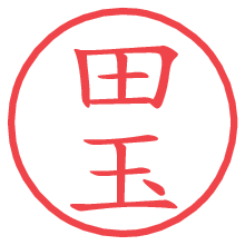 [朱肉の色]を選び、入力窓に“田玉”と入力して[生成]ボタンを押すと、印影が更新され、リンクから電子印鑑(デジタル印影)がダウンロードできます。 電子印鑑「田玉」の作り方文字表示が変なときや、文字バランスが悪いときは[字形切替]のチェックボックスでON/OFFを切り替え[生成]しなおしてください。 生成される画像は通常の印影「田玉.png」と、にじみを表現した少し太めの印影「田玉B.png」の背面透過PNG形式2種と、鮮明なPDF形式の印影「田玉.pdf」の計3種類です。 朱肉の微妙な色の違いを7色で表現しました。デフォルト(左端)は、JISが定めた朱肉の色のマンセル値(7.5R 5/14)をRGB値(217,66,54)に変換したものになっています。 「電子透かし」にチェックを入れて[生成]ボタンを押すと、タイムスタンプを電子透かしとして埋め込んだセキュアな電子印鑑が作れます。詳細は別ページの「タイムスタンプと電子透かし」でご覧ください。 田玉さんの日付印が作れます。「日付スタンプメーカー」は、社内向けの書類に利用されることの多い日付印(データ印)が無料で作れるWebアプリケーションです。中段に日付が入り、上段と下段は、ともに8文字まで文字が入ります。 ![]() 古代文字で落款印が作れます。「落款スタンプメーカー」で作品を引き立たせる落款印が作れます。