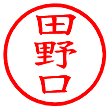 [朱肉の色]を選び、入力窓に“田野口”と入力して[生成]ボタンを押すと、印影が更新され、リンクから電子印鑑(デジタル印影)がダウンロードできます。 電子印鑑「田野口」の作り方文字表示が変なときや、文字バランスが悪いときは[字形切替]のチェックボックスでON/OFFを切り替え[生成]しなおしてください。 生成される画像は通常の印影「田野口.png」と、にじみを表現した少し太めの印影「田野口B.png」の背面透過PNG形式2種と、鮮明なPDF形式の印影「田野口.pdf」の計3種類です。 朱肉の微妙な色の違いを7色で表現しました。デフォルト(左端)は、JISが定めた朱肉の色のマンセル値(7.5R 5/14)をRGB値(217,66,54)に変換したものになっています。 「電子透かし」にチェックを入れて[生成]ボタンを押すと、タイムスタンプを電子透かしとして埋め込んだセキュアな電子印鑑が作れます。詳細は別ページの「タイムスタンプと電子透かし」でご覧ください。 田野口さんの日付印が作れます。「日付スタンプメーカー」は、社内向けの書類に利用されることの多い日付印(データ印)が無料で作れるWebアプリケーションです。中段に日付が入り、上段と下段は、ともに8文字まで文字が入ります。 ![]() 古代文字で落款印が作れます。「落款スタンプメーカー」で作品を引き立たせる落款印が作れます。