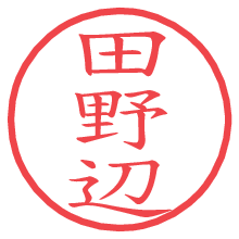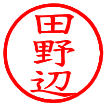 [朱肉の色]を選び、入力窓に“田野辺”と入力して[生成]ボタンを押すと、印影が更新され、リンクから電子印鑑(デジタル印影)がダウンロードできます。 電子印鑑「田野辺」の作り方文字表示が変なときや、文字バランスが悪いときは[字形切替]のチェックボックスでON/OFFを切り替え[生成]しなおしてください。 生成される画像は通常の印影「田野辺.png」と、にじみを表現した少し太めの印影「田野辺B.png」の背面透過PNG形式2種と、鮮明なPDF形式の印影「田野辺.pdf」の計3種類です。 朱肉の微妙な色の違いを7色で表現しました。デフォルト(左端)は、JISが定めた朱肉の色のマンセル値(7.5R 5/14)をRGB値(217,66,54)に変換したものになっています。 「電子透かし」にチェックを入れて[生成]ボタンを押すと、タイムスタンプを電子透かしとして埋め込んだセキュアな電子印鑑が作れます。詳細は別ページの「タイムスタンプと電子透かし」でご覧ください。 田野辺さんの日付印が作れます。「日付スタンプメーカー」は、社内向けの書類に利用されることの多い日付印(データ印)が無料で作れるWebアプリケーションです。中段に日付が入り、上段と下段は、ともに8文字まで文字が入ります。 ![]() 古代文字で落款印が作れます。「落款スタンプメーカー」で作品を引き立たせる落款印が作れます。