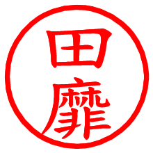 [朱肉の色]を選び、入力窓に“田靡”と入力して[生成]ボタンを押すと、印影が更新され、リンクから電子印鑑(デジタル印影)がダウンロードできます。 電子印鑑「田靡」の作り方文字表示が変なときや、文字バランスが悪いときは[字形切替]のチェックボックスでON/OFFを切り替え[生成]しなおしてください。 生成される画像は通常の印影「田靡.png」と、にじみを表現した少し太めの印影「田靡B.png」の背面透過PNG形式2種と、鮮明なPDF形式の印影「田靡.pdf」の計3種類です。 朱肉の微妙な色の違いを7色で表現しました。デフォルト(左端)は、JISが定めた朱肉の色のマンセル値(7.5R 5/14)をRGB値(217,66,54)に変換したものになっています。 「電子透かし」にチェックを入れて[生成]ボタンを押すと、タイムスタンプを電子透かしとして埋め込んだセキュアな電子印鑑が作れます。詳細は別ページの「タイムスタンプと電子透かし」でご覧ください。 田靡さんの日付印が作れます。「日付スタンプメーカー」は、社内向けの書類に利用されることの多い日付印(データ印)が無料で作れるWebアプリケーションです。中段に日付が入り、上段と下段は、ともに8文字まで文字が入ります。 ![]() 古代文字で落款印が作れます。「落款スタンプメーカー」で作品を引き立たせる落款印が作れます。