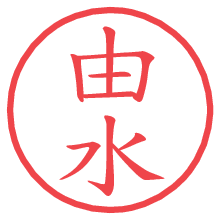 [朱肉の色]を選び、入力窓に“由水”と入力して[生成]ボタンを押すと、印影が更新され、リンクから電子印鑑(デジタル印影)がダウンロードできます。 電子印鑑「由水」の作り方文字表示が変なときや、文字バランスが悪いときは[字形切替]のチェックボックスでON/OFFを切り替え[生成]しなおしてください。 生成される画像は通常の印影「由水.png」と、にじみを表現した少し太めの印影「由水B.png」の背面透過PNG形式2種と、鮮明なPDF形式の印影「由水.pdf」の計3種類です。 朱肉の微妙な色の違いを7色で表現しました。デフォルト(左端)は、JISが定めた朱肉の色のマンセル値(7.5R 5/14)をRGB値(217,66,54)に変換したものになっています。 「電子透かし」にチェックを入れて[生成]ボタンを押すと、タイムスタンプを電子透かしとして埋め込んだセキュアな電子印鑑が作れます。詳細は別ページの「タイムスタンプと電子透かし」でご覧ください。 由水さんの日付印が作れます。「日付スタンプメーカー」は、社内向けの書類に利用されることの多い日付印(データ印)が無料で作れるWebアプリケーションです。中段に日付が入り、上段と下段は、ともに8文字まで文字が入ります。 ![]() 古代文字で落款印が作れます。「落款スタンプメーカー」で作品を引き立たせる落款印が作れます。