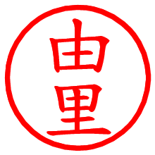 [朱肉の色]を選び、入力窓に“由里”と入力して[生成]ボタンを押すと、印影が更新され、リンクから電子印鑑(デジタル印影)がダウンロードできます。 電子印鑑「由里」の作り方文字表示が変なときや、文字バランスが悪いときは[字形切替]のチェックボックスでON/OFFを切り替え[生成]しなおしてください。 生成される画像は通常の印影「由里.png」と、にじみを表現した少し太めの印影「由里B.png」の背面透過PNG形式2種と、鮮明なPDF形式の印影「由里.pdf」の計3種類です。 朱肉の微妙な色の違いを7色で表現しました。デフォルト(左端)は、JISが定めた朱肉の色のマンセル値(7.5R 5/14)をRGB値(217,66,54)に変換したものになっています。 「電子透かし」にチェックを入れて[生成]ボタンを押すと、タイムスタンプを電子透かしとして埋め込んだセキュアな電子印鑑が作れます。詳細は別ページの「タイムスタンプと電子透かし」でご覧ください。 由里さんの日付印が作れます。「日付スタンプメーカー」は、社内向けの書類に利用されることの多い日付印(データ印)が無料で作れるWebアプリケーションです。中段に日付が入り、上段と下段は、ともに8文字まで文字が入ります。 ![]() 古代文字で落款印が作れます。「落款スタンプメーカー」で作品を引き立たせる落款印が作れます。