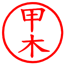 [朱肉の色]を選び、入力窓に“甲木”と入力して[生成]ボタンを押すと、印影が更新され、リンクから電子印鑑(デジタル印影)がダウンロードできます。 電子印鑑「甲木」の作り方文字表示が変なときや、文字バランスが悪いときは[字形切替]のチェックボックスでON/OFFを切り替え[生成]しなおしてください。 生成される画像は通常の印影「甲木.png」と、にじみを表現した少し太めの印影「甲木B.png」の背面透過PNG形式2種と、鮮明なPDF形式の印影「甲木.pdf」の計3種類です。 朱肉の微妙な色の違いを7色で表現しました。デフォルト(左端)は、JISが定めた朱肉の色のマンセル値(7.5R 5/14)をRGB値(217,66,54)に変換したものになっています。 「電子透かし」にチェックを入れて[生成]ボタンを押すと、タイムスタンプを電子透かしとして埋め込んだセキュアな電子印鑑が作れます。詳細は別ページの「タイムスタンプと電子透かし」でご覧ください。 甲木さんの日付印が作れます。「日付スタンプメーカー」は、社内向けの書類に利用されることの多い日付印(データ印)が無料で作れるWebアプリケーションです。中段に日付が入り、上段と下段は、ともに8文字まで文字が入ります。 ![]() 古代文字で落款印が作れます。「落款スタンプメーカー」で作品を引き立たせる落款印が作れます。