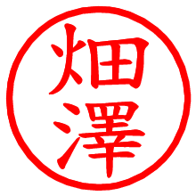[朱肉の色]を選び、入力窓に“畑澤”と入力して[生成]ボタンを押すと、印影が更新され、リンクから電子印鑑(デジタル印影)がダウンロードできます。 電子印鑑「畑澤」の作り方文字表示が変なときや、文字バランスが悪いときは[字形切替]のチェックボックスでON/OFFを切り替え[生成]しなおしてください。 生成される画像は通常の印影「畑澤.png」と、にじみを表現した少し太めの印影「畑澤B.png」の背面透過PNG形式2種と、鮮明なPDF形式の印影「畑澤.pdf」の計3種類です。 朱肉の微妙な色の違いを7色で表現しました。デフォルト(左端)は、JISが定めた朱肉の色のマンセル値(7.5R 5/14)をRGB値(217,66,54)に変換したものになっています。 「電子透かし」にチェックを入れて[生成]ボタンを押すと、タイムスタンプを電子透かしとして埋め込んだセキュアな電子印鑑が作れます。詳細は別ページの「タイムスタンプと電子透かし」でご覧ください。 畑澤さんの日付印が作れます。「日付スタンプメーカー」は、社内向けの書類に利用されることの多い日付印(データ印)が無料で作れるWebアプリケーションです。中段に日付が入り、上段と下段は、ともに8文字まで文字が入ります。 ![]() 古代文字で落款印が作れます。「落款スタンプメーカー」で作品を引き立たせる落款印が作れます。
