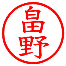 [朱肉の色]を選び、入力窓に“畠野”と入力して[生成]ボタンを押すと、印影が更新され、リンクから電子印鑑(デジタル印影)がダウンロードできます。 電子印鑑「畠野」の作り方文字表示が変なときや、文字バランスが悪いときは[字形切替]のチェックボックスでON/OFFを切り替え[生成]しなおしてください。 生成される画像は通常の印影「畠野.png」と、にじみを表現した少し太めの印影「畠野B.png」の背面透過PNG形式2種と、鮮明なPDF形式の印影「畠野.pdf」の計3種類です。 朱肉の微妙な色の違いを7色で表現しました。デフォルト(左端)は、JISが定めた朱肉の色のマンセル値(7.5R 5/14)をRGB値(217,66,54)に変換したものになっています。 「電子透かし」にチェックを入れて[生成]ボタンを押すと、タイムスタンプを電子透かしとして埋め込んだセキュアな電子印鑑が作れます。詳細は別ページの「タイムスタンプと電子透かし」でご覧ください。 畠野さんの日付印が作れます。「日付スタンプメーカー」は、社内向けの書類に利用されることの多い日付印(データ印)が無料で作れるWebアプリケーションです。中段に日付が入り、上段と下段は、ともに8文字まで文字が入ります。 ![]() 古代文字で落款印が作れます。「落款スタンプメーカー」で作品を引き立たせる落款印が作れます。