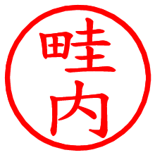 [朱肉の色]を選び、入力窓に“畦内”と入力して[生成]ボタンを押すと、印影が更新され、リンクから電子印鑑(デジタル印影)がダウンロードできます。 電子印鑑「畦内」の作り方文字表示が変なときや、文字バランスが悪いときは[字形切替]のチェックボックスでON/OFFを切り替え[生成]しなおしてください。 生成される画像は通常の印影「畦内.png」と、にじみを表現した少し太めの印影「畦内B.png」の背面透過PNG形式2種と、鮮明なPDF形式の印影「畦内.pdf」の計3種類です。 朱肉の微妙な色の違いを7色で表現しました。デフォルト(左端)は、JISが定めた朱肉の色のマンセル値(7.5R 5/14)をRGB値(217,66,54)に変換したものになっています。 「電子透かし」にチェックを入れて[生成]ボタンを押すと、タイムスタンプを電子透かしとして埋め込んだセキュアな電子印鑑が作れます。詳細は別ページの「タイムスタンプと電子透かし」でご覧ください。 畦内さんの日付印が作れます。「日付スタンプメーカー」は、社内向けの書類に利用されることの多い日付印(データ印)が無料で作れるWebアプリケーションです。中段に日付が入り、上段と下段は、ともに8文字まで文字が入ります。 ![]() 古代文字で落款印が作れます。「落款スタンプメーカー」で作品を引き立たせる落款印が作れます。